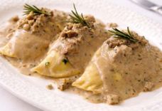 Равиолони с томлёной щекой и грибным соусом