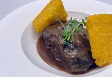 Говяжьи щечки в соусе демиглас с полентой фри